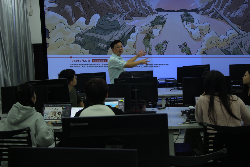 本次活动适逢抗美援朝胜利70周年,学院徐鸣教授带领四十余名在校生,耗时8个多月创作完成长达70米的《抗美援朝手绘长卷》,师生的笔尖绘制了在抗美援朝战争中的50个重要事件,用艺术的形式向烈士英雄们致敬,弘扬伟大的抗美援朝精神。10月25日在纪念中国人民志愿军抗美援朝出国作战73周年当天在红网、时刻新闻发布,学习强国、人民日报、央视频、中国新闻网、人民视频、潇湘晨报,九色