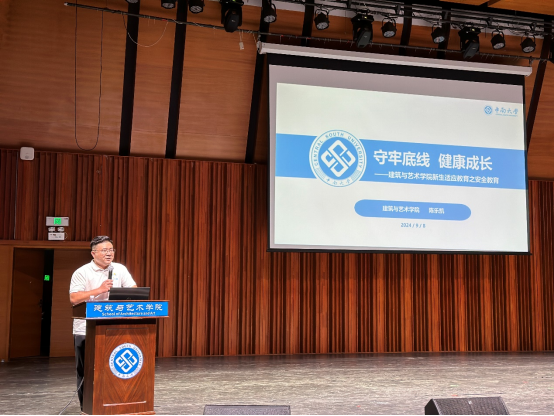 2024级本科新生安全教育暨廉洁与诚信主题教育在艺术楼音乐厅顺利举行。主题教育由院党委副书记陈乐凯主讲,学院2024级全体本科新生参加。