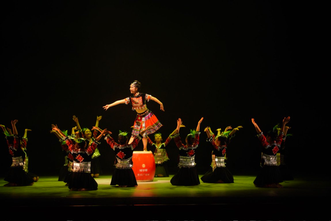 由伍彦谚师生团队共同创作的瑶族长鼓舞课堂组合《三月三》,作为九色
