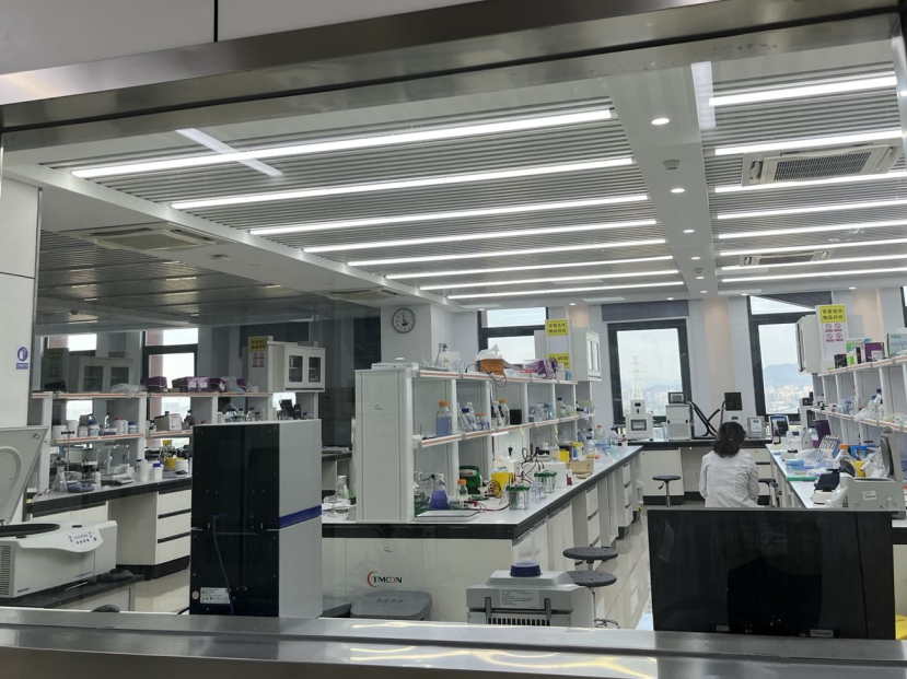 同学们近距离观看先进的实验设施,有陌生的大型仪器,也有在课本上见过的离心机、锥形瓶等,还有一些实验记录的笔记。
