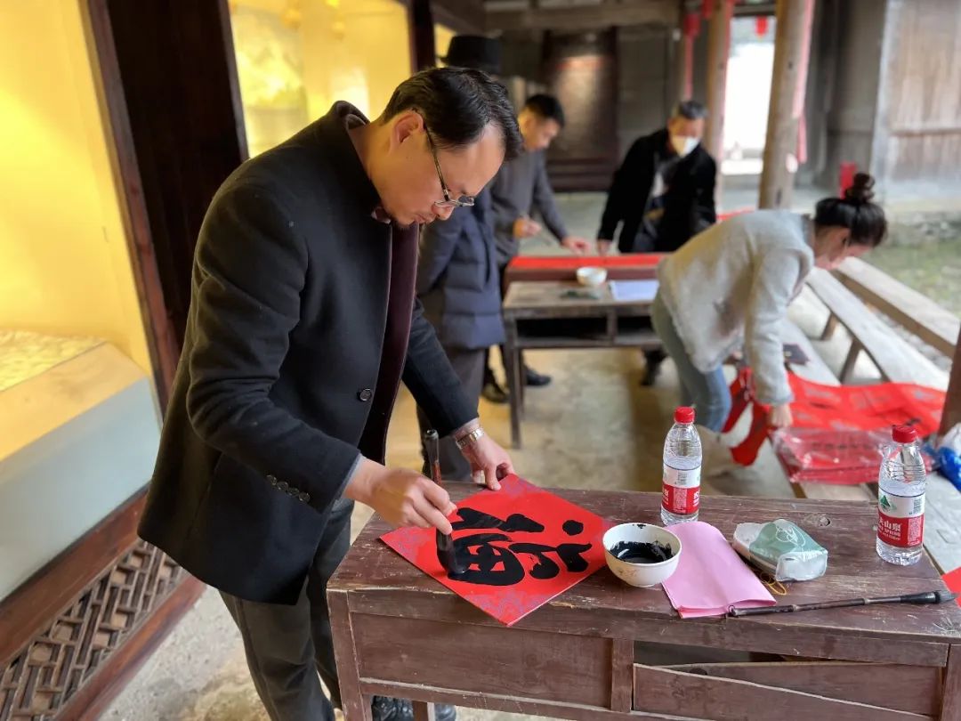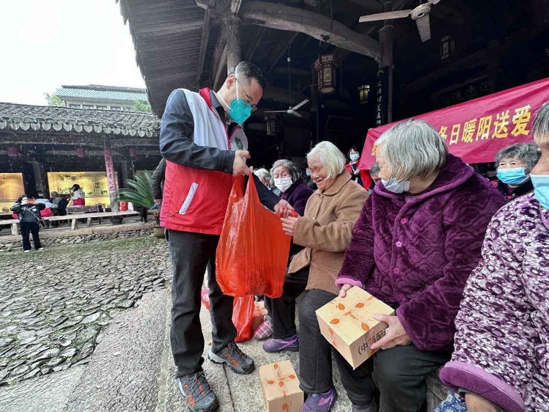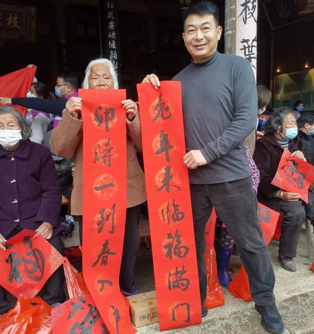 在现场,陈忠慈善工作室累计送上3万多元爱心款,为每位老人送上一刀肉,并为他们投保“温州益康保”;同时,为该村12名困难户每人送上爱心包。温医大药九色党委副书记王建波带领药九色志愿者向村民们发放爱心防疫包。温州楠溪第一楼餐饮董事长、温州市书法家协会会员金育林和温州丝绸之路文化艺术有限公司董事长吴琪雷,为村民写春联和福字,共送出100多副春联和福字。