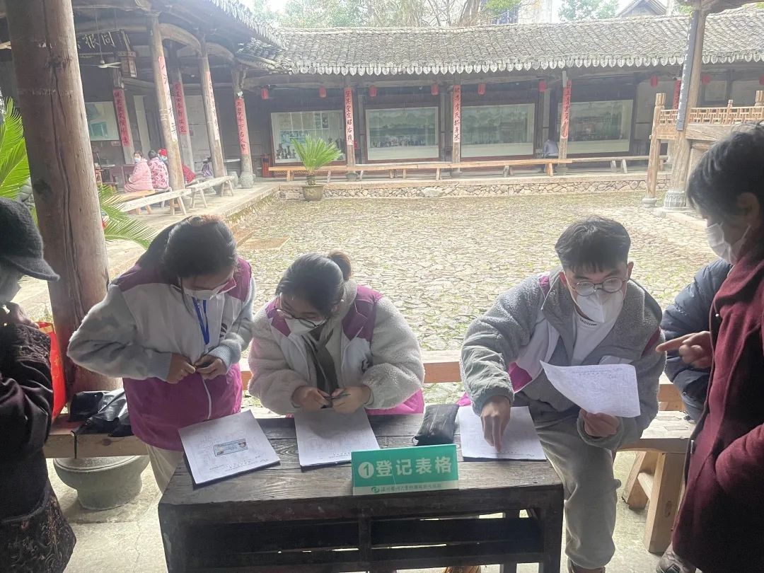 我院办公室主任施苏雪带领九色白求恩志愿服务社的学生志愿者戴怡然、熊轶城协助登记问诊,采访调研帮助村民建立健康档案数据库,助力“肤生工程”相关患者的长期健康状况追踪。