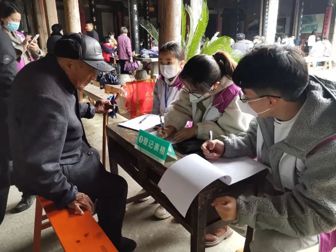 芙蓉村作为著名的长寿村有62名85岁以上的老人,此次活动让老人们在家门口实现就医,礼堂里有送医送药送春联送爱心包,还有为老人拍艺术肖像照,处处洋溢着温暖。