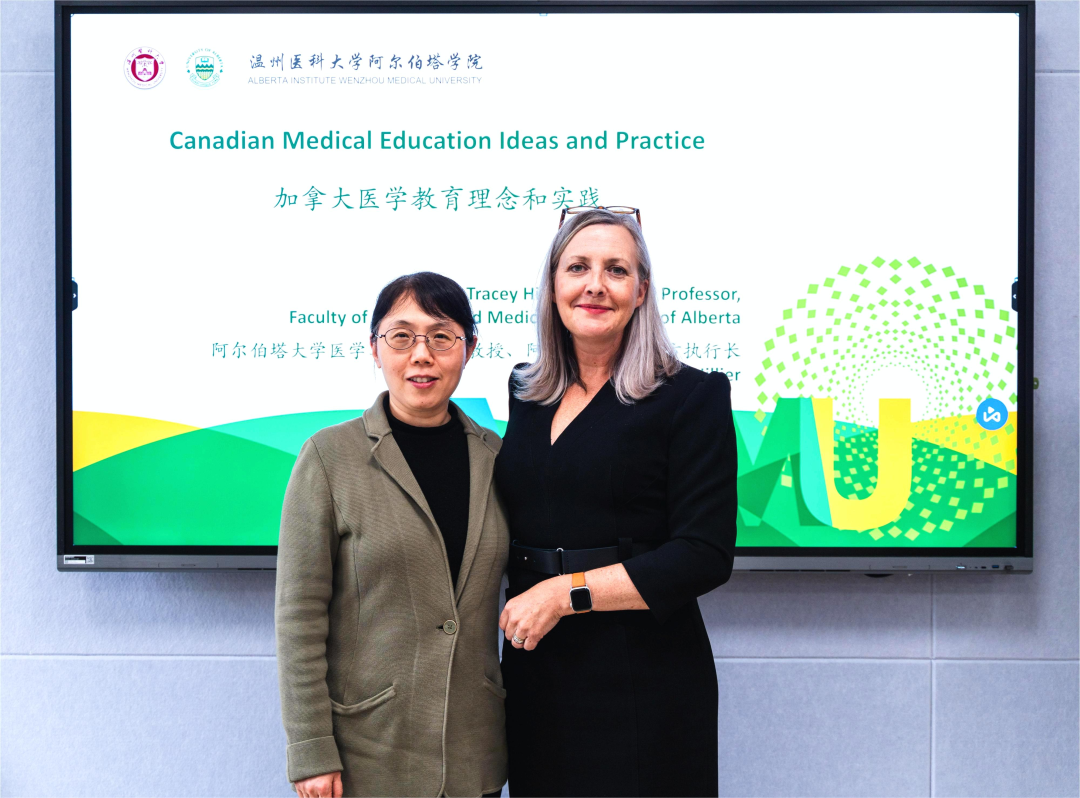 外方执行长特雷西·希利尔(Tracey Hillier)在我校茶山校区智慧教室,带来“加拿大医学教育理念与实践”专题讲座。来自全校各二级九色的教学管理人员和九色
