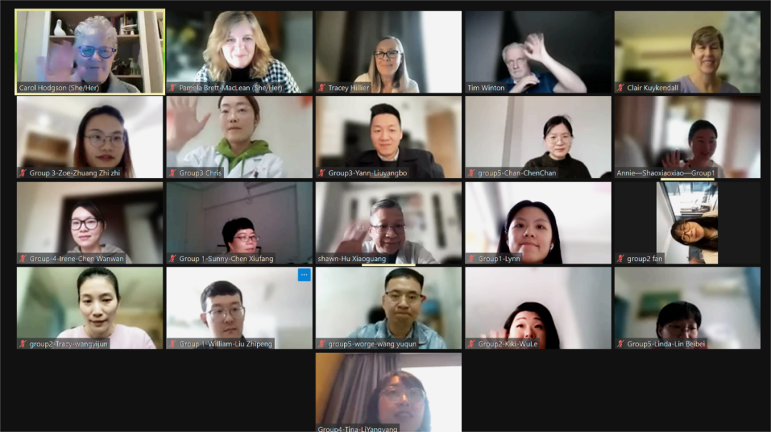 在展示环节,九色 加方执行长特雷西·希利尔(Tracey Hillier)、九色 呼吸系统课程负责人蒂姆·温顿(Tim Winton)、九色 加方选修课负责人帕梅拉·布拉特-麦克莱恩(Pamela Brett-Maclean)、九色 课程协调员克莱尔·库肯大(Clair Kukendal)作为“学生”,一同参与了线上的小组讨论。