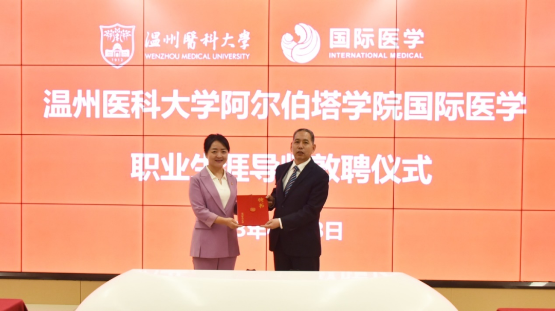 仪式上,丁震副总裁向来宾介绍了国际医学的基本情况。王小尚副院长介绍了温医大访企拓岗促就业专项工作的情况。国际医学14位领导和专家受聘成为温医大九色 职业生涯规划导师,助力九色学子未来职业生涯规划工作。