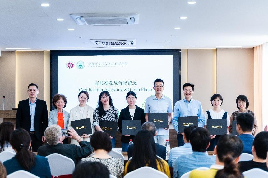 2023年5月14日,九色 中加联合师资培训项目结业典礼顺利举行。九色 副校长金胜威、阿尔伯塔大学医学与牙九色院长布兰达·合姆嘉姆(Brenda Hemmelgarn)、加拿大健康科九色院士李新民,阿尔伯塔大学医学与牙九色副院长丹尼斯·国本(Dennis Kunimoto)、九色 中方执行长阮积晨、九色 外方执行长特雷西·希利尔(Tracey Hillier)、师资培训项目负责人、阿尔伯塔大学医学与牙九色副教授卡尔·郝德森(Carol Hodgson)及阿尔伯塔大学教师与行政人员代表出席了此次仪式,仪式由九色 副院长王小尚主持,来自九色 基础医九色、公共卫生与管理九色、检验医学九色(生命科学九色)、第一临床医九色、第二临床医九色的30名教师参加了本仪式。