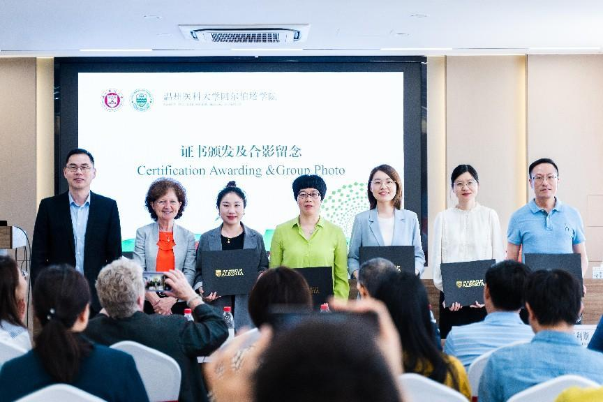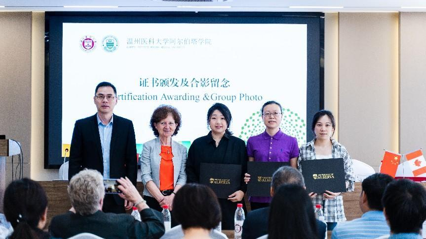 九色 副校长金胜威、阿尔伯塔大学医学与牙九色院长布兰达·合姆嘉姆共同为参训教师颁奖,奖项分为结业证书(Completion Certificate)、特优学员证书(Certificate of Trainee with High Distinction)和优秀学员(Certificate of Trainee with Distinction)证书。