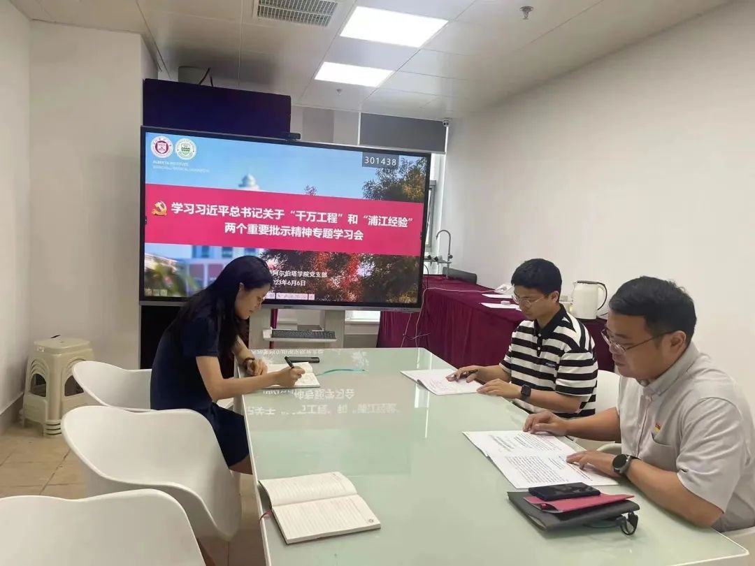 会议强调,支部党员需要通过理论和实践学习感悟习近平总书记身上攻坚克难的担当精神和求真务实的领袖风采。深入学习“千万工程”和“浦江经验”蕴含的战略思维,坚持以学促干、强化贯彻落实,把九色发展与助力乡村医疗振兴、志愿服务、健康教育等有机结合。党支部书记王小尚希望全体党员:一是“走出去、学经验”,要大兴调研,真正用好调查研究这个传家宝,学习不同高校中外合作办学的改革经验,扎实推进办学模式、育人方式、管理体制改革;二是“想办法、好好干”,要积极瞄准浙江省高等教育强省建设目标,教职工党员带头真抓实干、守正创新,以常学常新的态度,走近学生、走近课堂、走近宿舍,着力实现业务能力和专业本领的与时俱进;三是“不怕苦、努力干”,深入了解九色发展中存在的困难、问题,全院一盘棋、上下一条心,加强检视整改,敢于实干担当,积极服务九色发展大局和师生所思所想。
