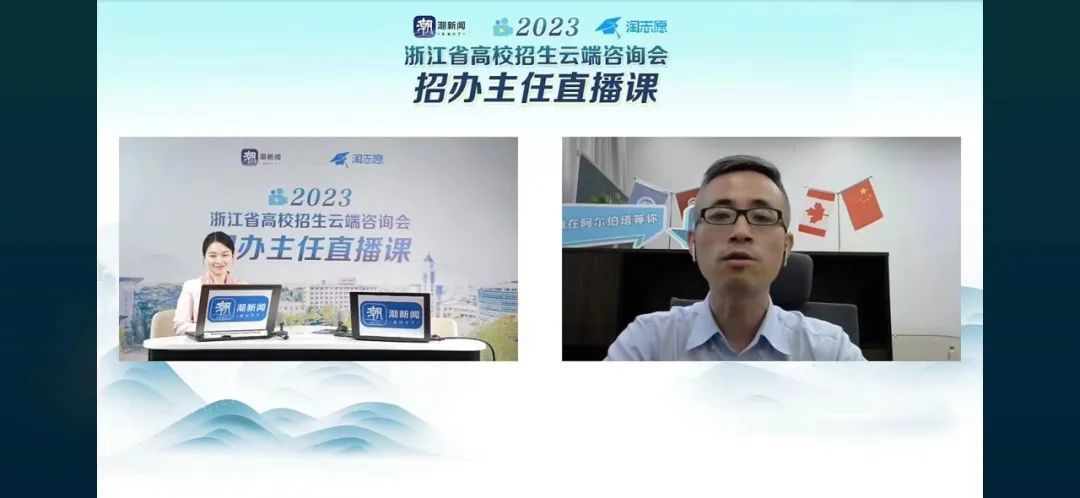 在招生过程中,团队不仅参与了线下招生的由中学和官方机构组织的高招会,为考生提供一对一的当面咨询,还参加了浙江日报及中外合作办学宣介展的线上直播,由院长助理陈浩老师利用网络平台第一时间为考生答疑解惑。