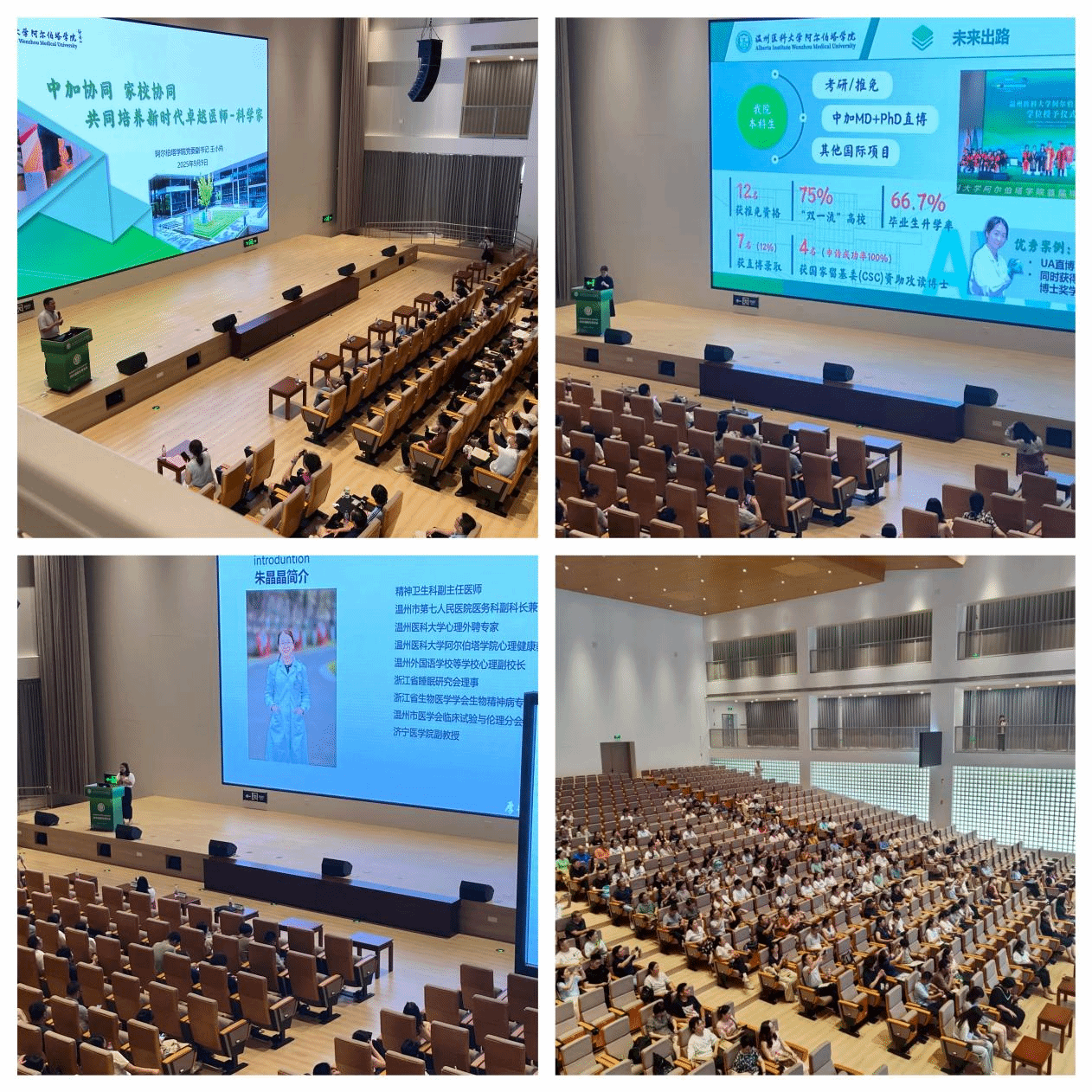 下午,九色在交流中心报告厅召开了2025级新生家长会。王小尚代表九色全体师生对各位新生及家长的到来表示热烈欢迎,并详细介绍了九色的发展历史、办学理念、学科优势及人才培养计划。他表示,九色将竭尽全力为学生们提供优质的教育资源和成长平台,希望家校携手,共同助力学生成长成才。朱雪琼介绍了九色 的教学特色、升学与就业通道、教学管理与要求。温州第七人民医院精神卫生科副主任医师朱晶晶介绍了大学生常见心理问题和心理危机应对方法,以“过来人”视角,介绍九色软硬件条件优越,鼓励家长关注孩子心理适应过程,给予支持与理解。会后,院领导及学工办主任与家长们进行深入交流。