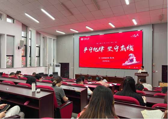 根据学校党纪学习教育实施方案和学校纪委“六个一”工作安排,为进一步推进全体教职员工学纪、知纪、明纪、守纪。628日,校纪委第二纪检监察室主任杨帆来学院开展“一院一宣讲”专题宣讲报告。会议由院党委书记柯朝晖主持,学院全体教职工参加。
