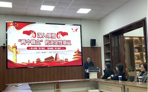 首先,学院党委委员、副院长解明镜给全体党员讲授了以《深入领悟“两个确立”的决定性意义》为题的专题党课。解明镜强调,“两个确立” 作为党在新时代取得的重大政治成果,具有极其深远的历史意义和重大的现实意义。它是推动党和国家事业取得历史性成就、发生历史性变革的决定性因素,在新时代新征程中,对于推进中国特色社会主义事业迈向前进发挥着关键引领作用。全体党员需进一步增强 “四个意识”,始终坚定 “四个自信”,坚决做到 “两个维护”,切实将思想和行动统一到党中央的决策部署上来,自觉在思想上、政治上、行动上同以习近平同志为核心的党中央保持高度一致,凝聚起推动事业发展的强大合力,为实现中华民族伟大复兴的中国梦贡献力量。