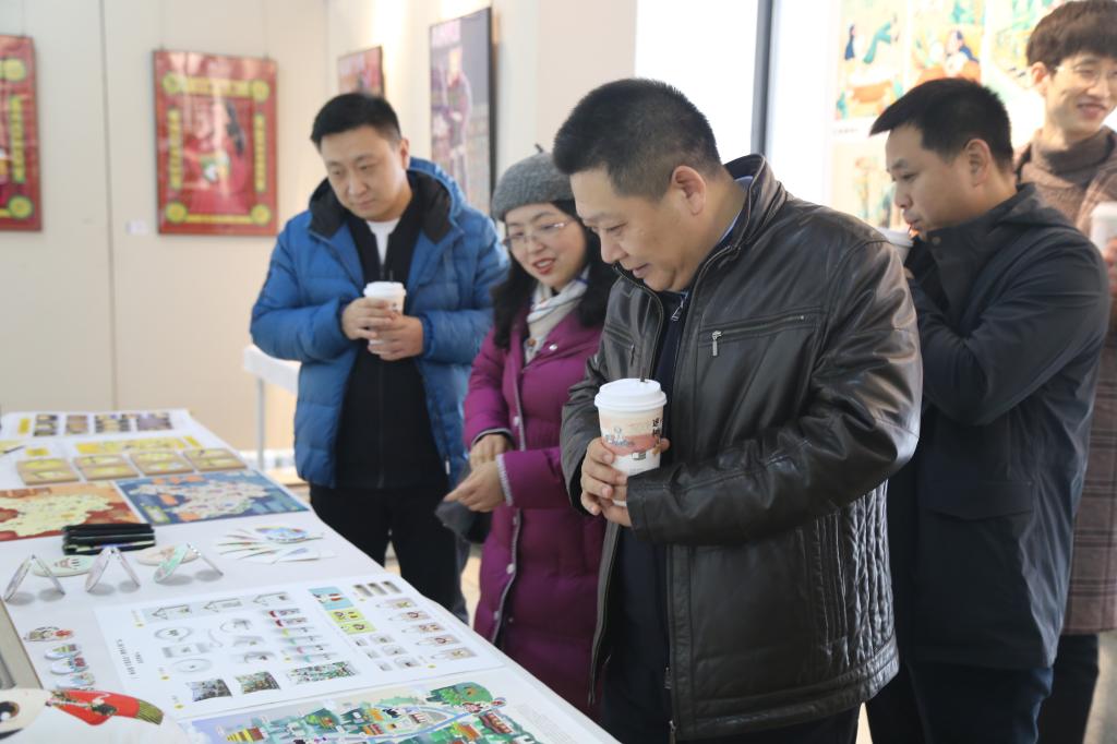 首先,来访领导们在萧沁教授及其团队陪同下参观了我院2020年艺术硕士(MFA)中期作品联展。萧沁教授为领导们介绍了我院艺术硕士研究生人才培养特色以及视觉设计艺术研究所与中国地图出版社合作的部分艺术实践成果。