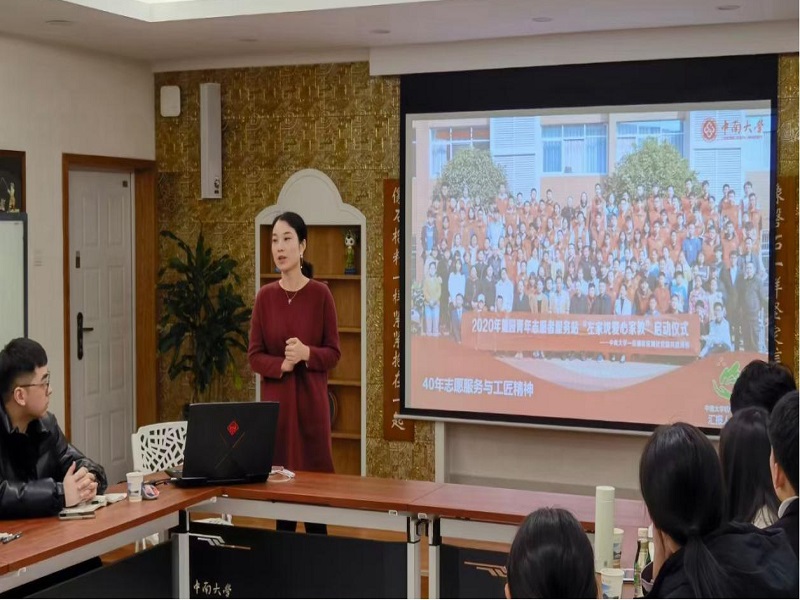 机电工程学院周芳老师以“四十年志愿服务与工匠精神”为题进行交流。她讲述了机电工程学院“麓园青年志愿服务站”40年志愿服务历程,用志愿服务站的历届会员毕业后在祖国各地发扬工匠精神,为我国各行各业发展做贡献的感人故事进一步说明服务站实践育人的显著成效。