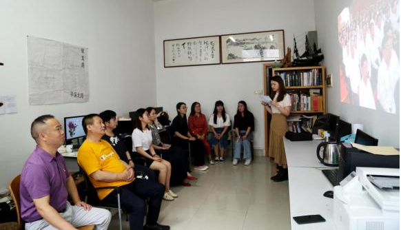 20217月1日上午,环境设计系主任谢旭斌教授及其研究生团队为庆祝中国共产党成立100周年在301工作室举办了“红色文化景观现代审美性与传承性的红色主题教育研讨会。院党委书记喻跃龙业务办主任王小青、组织干事丁蕾以及钱蕾老师受邀参加。