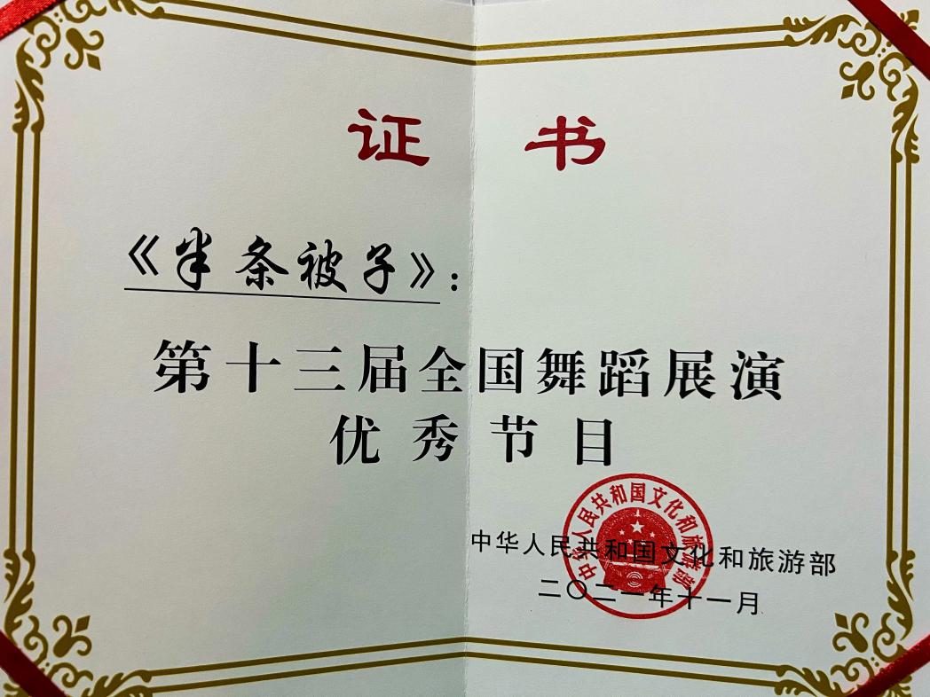 副教授郭贝贝原创的舞蹈作品《半条被子》,在学校和学院的大力支持、舞蹈专业同学们的全力付出下,《半条被子》在此次全国舞蹈展演活动中荣获“优秀节目”荣誉称号!