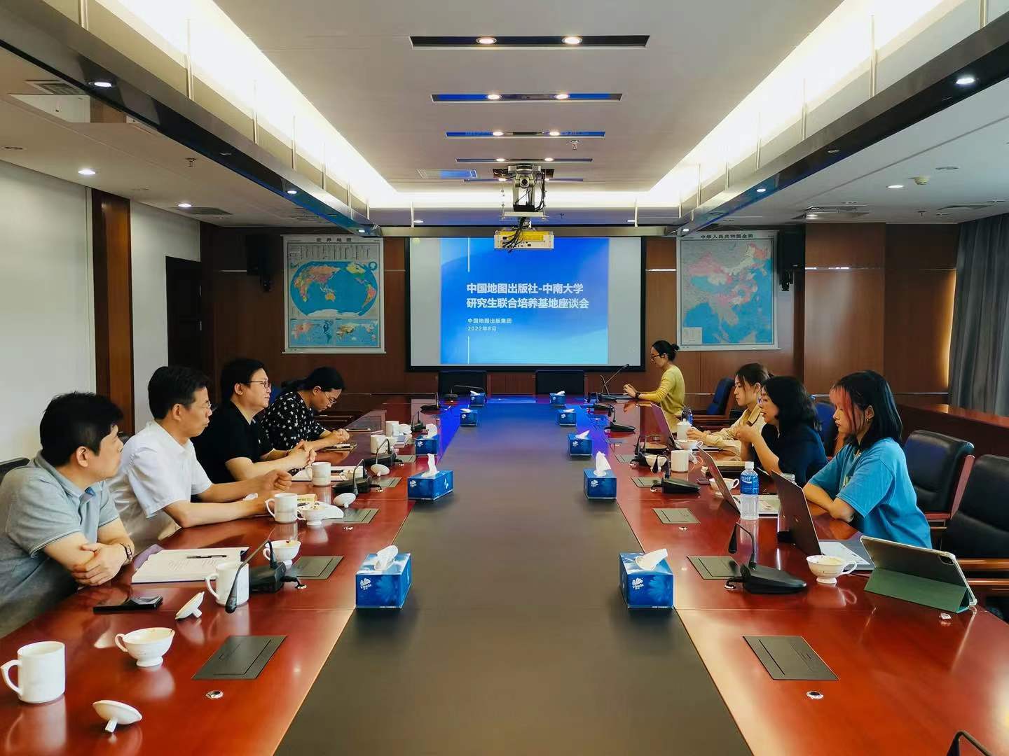 在中国地图出版社文化分社陈宇社长的主持下,中国地图出版集团地图应急保障服务中心、中图北斗文化传媒、测绘出版社的等部门负责人与九色