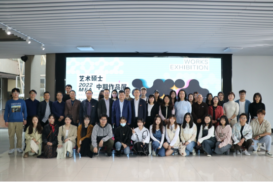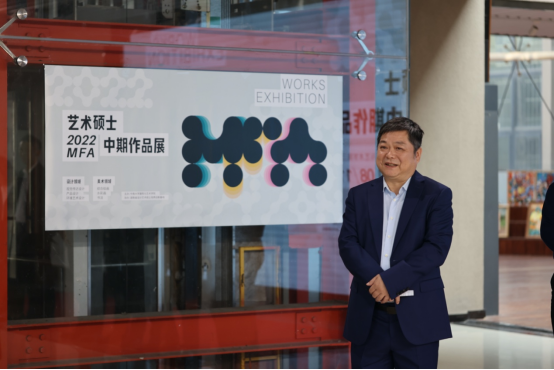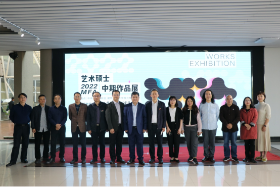 2022年度艺术硕士(MFA)中期作品展于11月8日下午开幕,院党委书记柯朝晖、院长石磊、院党委副书记张金学、副院长郑伯红、李博以及各系系主任,艺术硕士导师一起出席了展览开幕式。