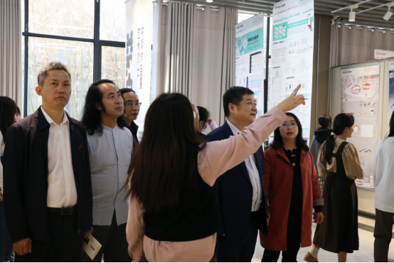 谢旭斌教授代表导师讲话,他充分肯定了同学们在学习中所取得的成绩,表扬了同学们有想法有思想,各专业各具特色。鼓励学生继续坚持创造性转化,服务国家与社会发展,同时也希望今后同学们作品表现形式更丰富,增加更多的模型和设计实物展示。