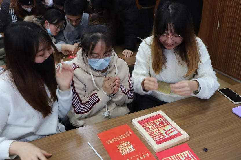 决赛环节,全体党员庄严肃穆,奏唱国歌。在红色旋律下,知识竞赛正式开始。“踊跃竞学,来抢答”要求同志们沉着冷静、积极拼搏,在短时间内通过抢答器抢答二十大相关知识;“过目不忘,关键词”环节,各支部同志聚精会神,短时间内记忆二十大中涵盖的重要关键词;“拼尽全力,学金句”环节则考验支部党员对二十大中“金句”以及中华传统篆刻文字图形的理解。