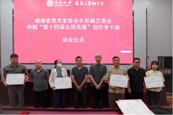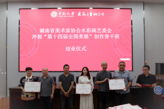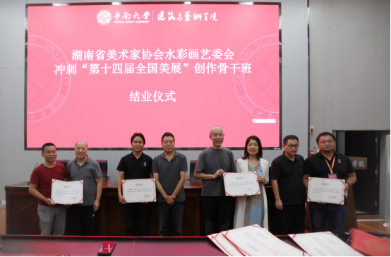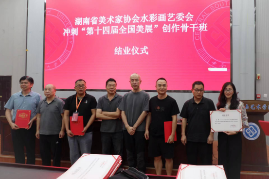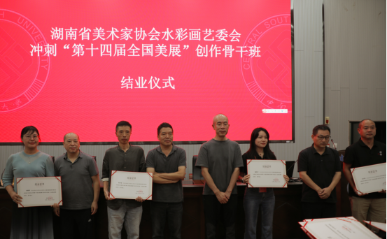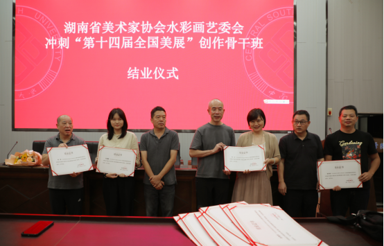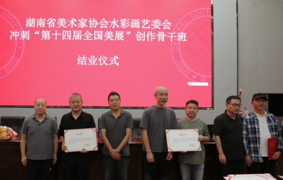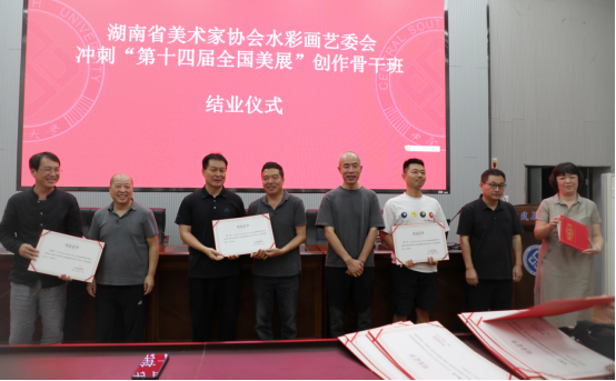 中国美术家协会水彩艺术委员会委员刘永健、陈流、董克诚,湖南美术家协会水彩艺术委员会主任唐晓明为学员颁发结业证书