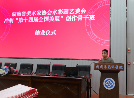 湖南省美术家协会水彩艺术委员会秘书长石明祥主持结业仪式