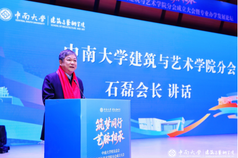 学院院长石磊作为校友分会首任会长讲话。他向重返母校的校友们致以热烈欢迎,回望学院发展历程,他强调,从1993年设计类专业、城乡规划专业初创,到1995年建筑学专业启航,到2006年音乐与舞蹈专业设立,再到2010年美术书法方向研究生开始招生;从2002年艺术学院成立,到2011年建筑艺术学院合并组建,学院始终恪守“经世致用,知行合一”校训,力行“厚德尚美,经世立新”院训,在“大艺术大创意大设计”的理念指引下砥砺前行。他指出,校友是学院最宝贵的财富,大家带着建艺人的初心与坚守,在建筑设计、城乡规划、艺术设计和艺术传播等领域建功立业。他还简要介绍了近5年来学院在学科布局、师资力量、科学研究、人才培养等方面取得的突出成绩及未来规划等。作为首任会长,他表示将与理事会一道,努力把校友分会打造成大家信赖的“暖心家园”与“奋斗港湾”。